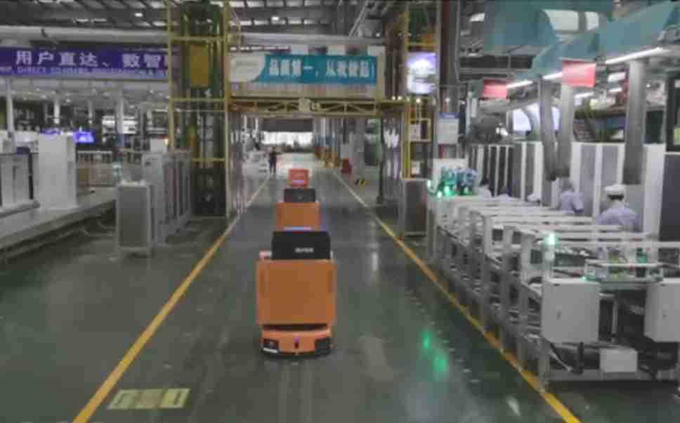 为车载冰箱物流配送打造的智能解决方案,,包含产中物流通过潜伏举升AMR搬运至线边,,,产后成品物流智能仓储,,流程包含产中物流智能齐套入库,,,,线边安灯叫料AMR智能配送至线边,,,成品入库、、、、出库,,通过无人堆高车机器人,,,智能仓储管理替代人工作业管理,,,实现更高存储、、更高效率、、、、更具柔性化的解决方案。。。。